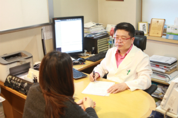 이태규 신경내과 원장이 어지럼증을 호소하는 여성과 상담하고 있다.