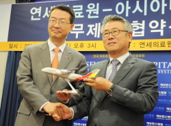 이철 연세의료원장은 “아시아나는 정기적으로 병원을 찾아 자선공연과 후원을 했고 지난 4월 개원한 연세암병원에 정원을 기증했다”며 “이번 협약은 세브란스의 해외환자 유치와 세계 재난지역 및 무의촌 봉사활동에 도움이 될 것” 이라고 말했다.