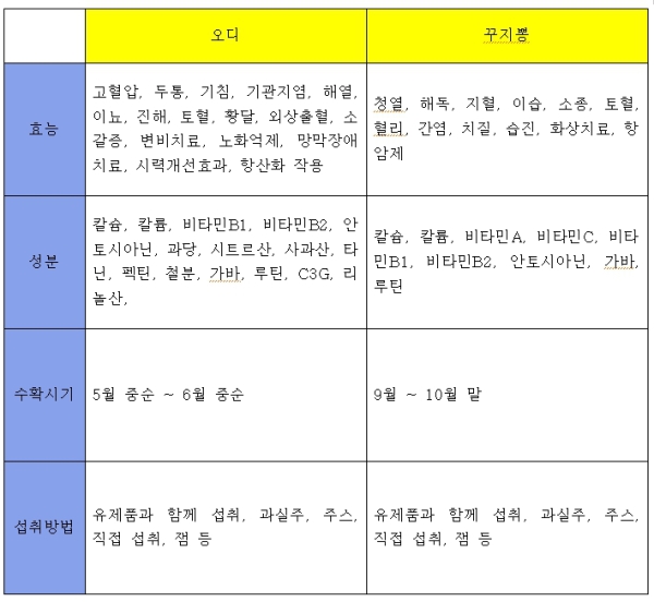 오디와 꾸지뽕의 비교