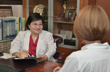유박영 압구정 웰에이징의원 원장이 한 여성과 질건조증에 대해 상담하고 있다.