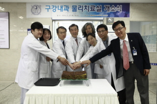 서울대치과병원 관계자들이 12일 제2물리치료실 개소를 기념해 케이크를 자르고 있다.
