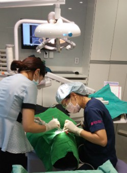 남궁희 강남 뉴페이스치과(신논현역) 원장이 ‘즉시 임플란트’ 시술을 하고 있다.