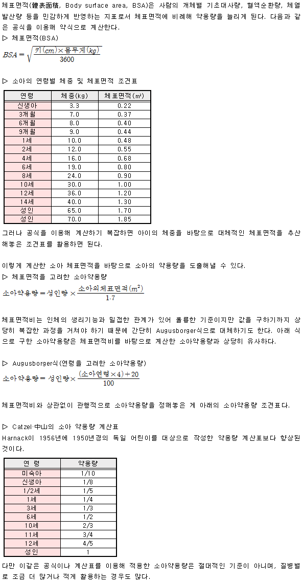소아의 약용량