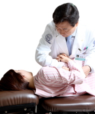 신준식 자생한방병원 이사장이 척추질환 환자에게 추나요법을 실시하고 있다.