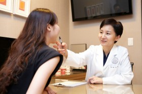 백은영 신데렐라치과 원장이 치아미백 환자를 상담하고 있다.