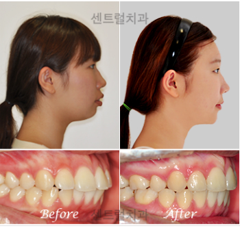 킬본으로 돌출입을 개선한 전(왼쪽)·후 사진, 센트럴치과 제공
