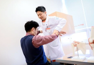 새나래병원 박종민 정형외과 원장이 오십견 환자를 진료하고 있다.