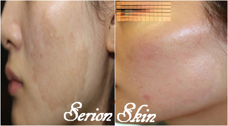 밀크커피모반 수술 전(왼쪽)과 치료 후 모습, 세련피부과 제공