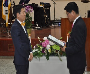 유득종 근로복지공단 인천병원 간호사(왼쪽)가 지난 18일 열린 ‘인천병원 제24회 간호사의 날 기념식’에서 나이팅게일상을 수상하고 있다.