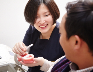 세종시 맘애든치과 안슬민 원장이 부정교합 환자와 상담하고 있다.