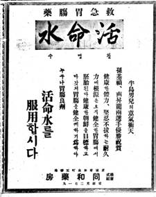 당시 동화약방(現 동화약품)은 민강 사장이 독립운동에 투신하다 갑작스럽게 사망해 큰 경영 위기를 겪고 있었다. 그럼에도 건강한 체력의 근원이 건전한 위장이며 이를 위해 “건강한 조선을 목표로 하자”는 민족의 아픔을 위로하고 격려하는 메시지를 담은 광고를 게재해 민족정신을 강조했다.