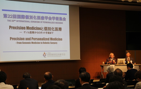 아베 히로유키 아베종양내과병원 이사장(왼쪽)이 지난달 29일 일본 도쿄에서 열린 ‘제22회 국제개별화의료학회’에서 ‘아베백스’를 활용한 치료사례를 발표하고 있다.