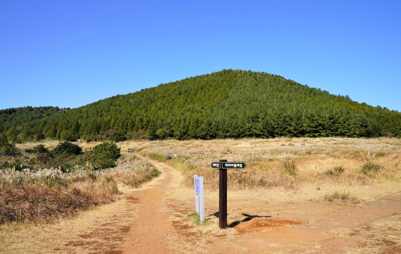 1. 따라비오름은 높이 102m, 둘레는 2633m로 아담하다. 초가을이면 은빛 억새와 짙은 초록의 숲, 푸른 하늘의 어울림이 환상적이다.